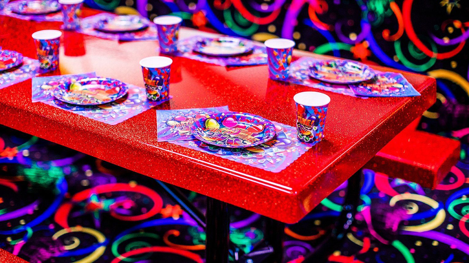 With all packages, we will provide a table set up that includes skate-themed cups, napkins, plates, and sporks.